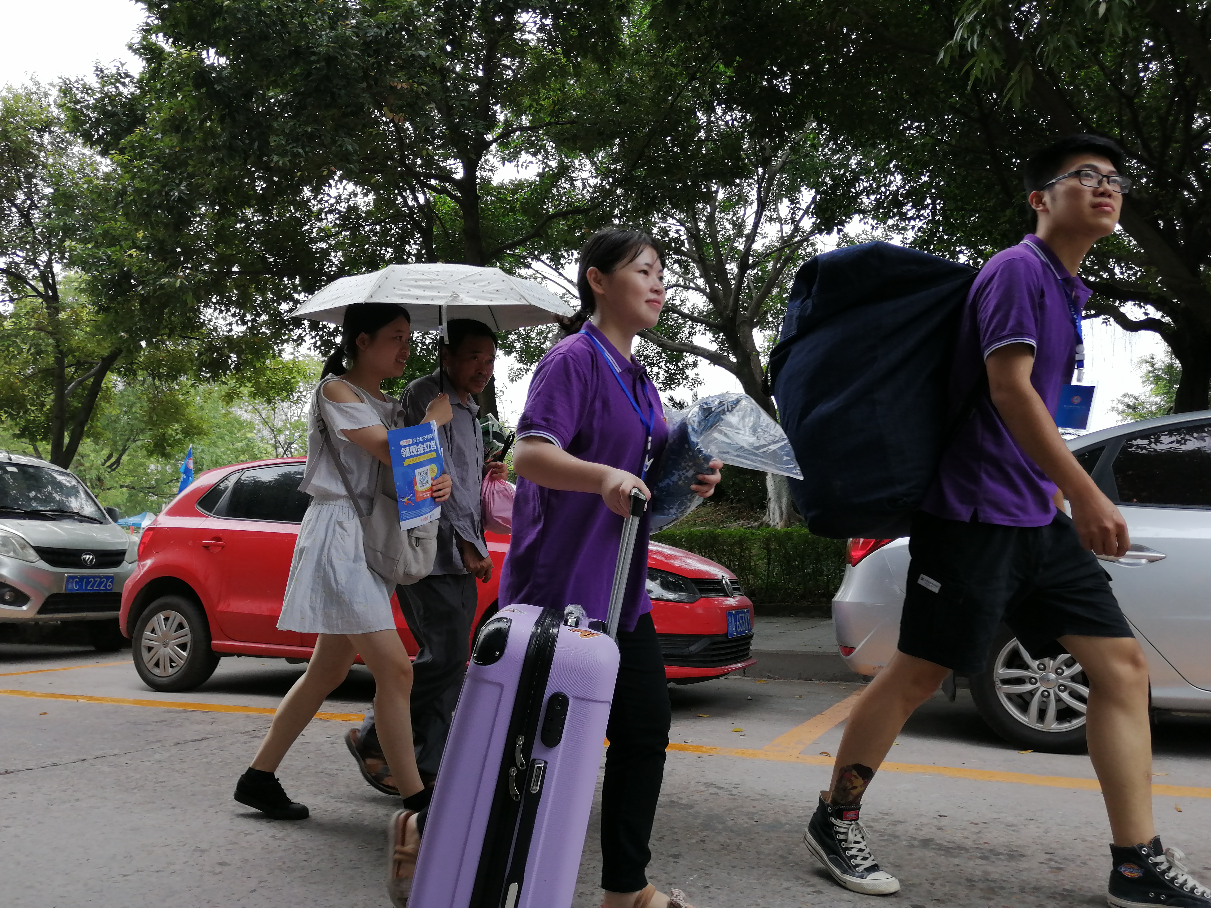 8月31日早上7:30,大数据学院的志愿者已经开始迎新了。志愿者们以饱满的精神状态投入到工作之中,分工协作、环环相扣。有的志愿者奔波于学院门口和行李寄存点,将新生们准确引导至报到地点;有的志愿者引导有需求的新生及家长到公司辅导员处报到;有的的志愿者带领已完成报到手续的新生前往宿舍。他们奔波忙碌,及时为新生和家长提供温馨周到的服务。在志愿者们的热情帮助下,感动着一个又一个新生和家长,得到了他们的高度认可和赞扬,也因为志愿者们穿着紫色的系服,被人们亲切的称呼为“紫”愿者。