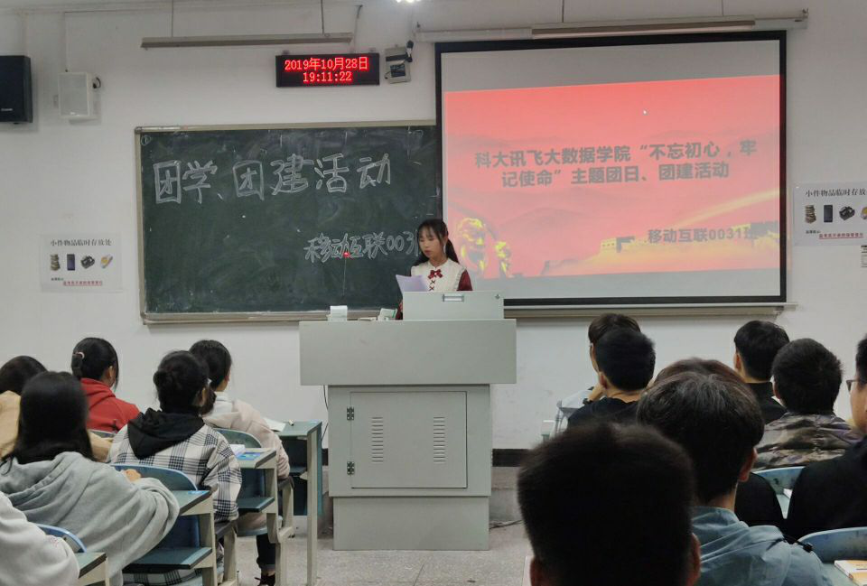 2019年10月28日19级移动互联0031班在文华楼210开展了以“不忘初心、牢记使命”为主题的班级活动。