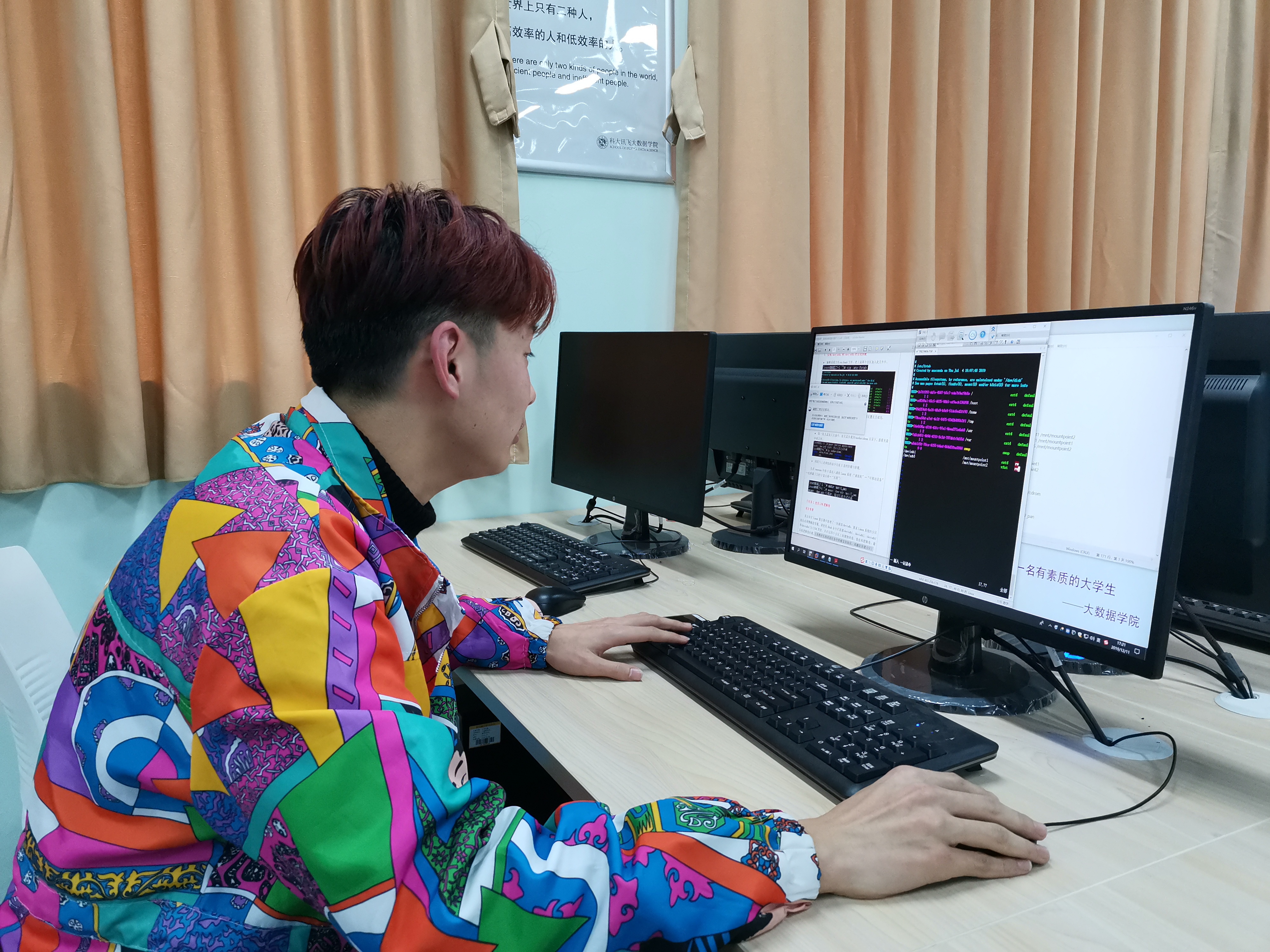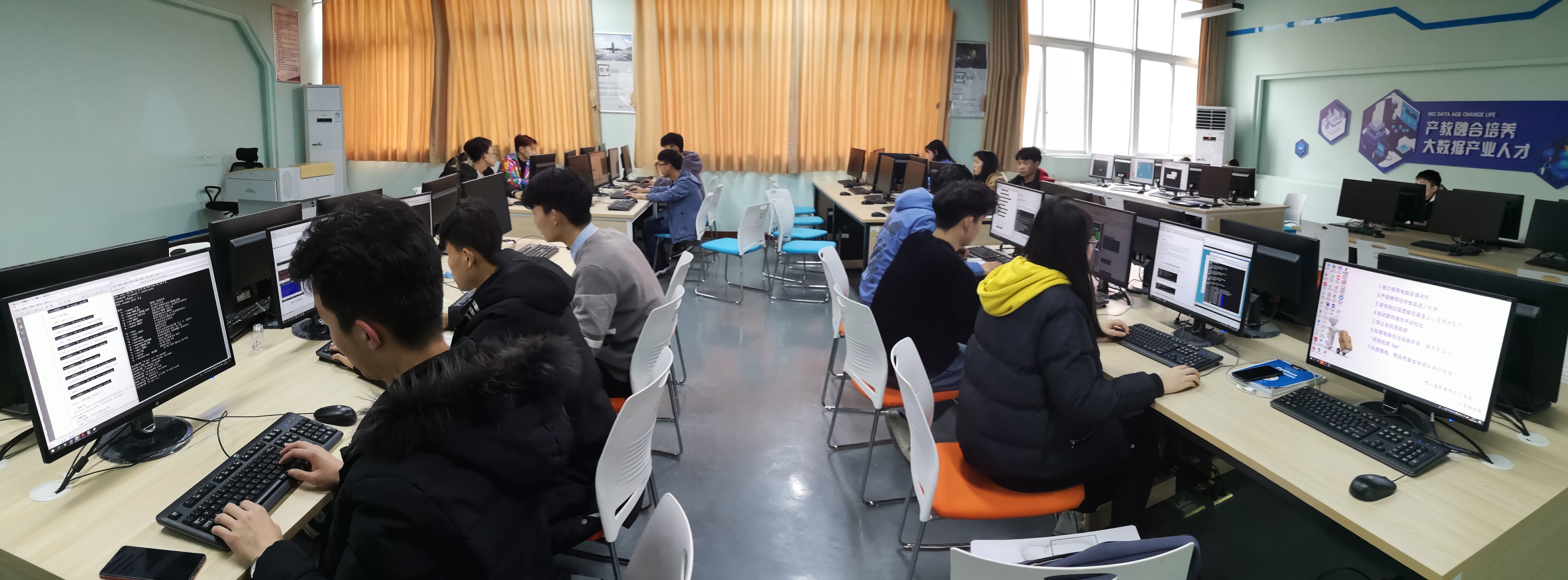 为营造良好班风学风,增强学习自主性,对日常学习情况查漏补缺。12月12日大数据学院18计应(可视化)班全体同学自发在明华楼306实训室进行集中自学机房内的每位同学都沉浸于练习Linux系统操作和编程同学们表示,每一次的自主学习活动不仅可以夯实自身的专业知识和技能,同学间的相互监督还有利于共同进步,更可帮助同学们养成惜时如金、积极进取的好习惯