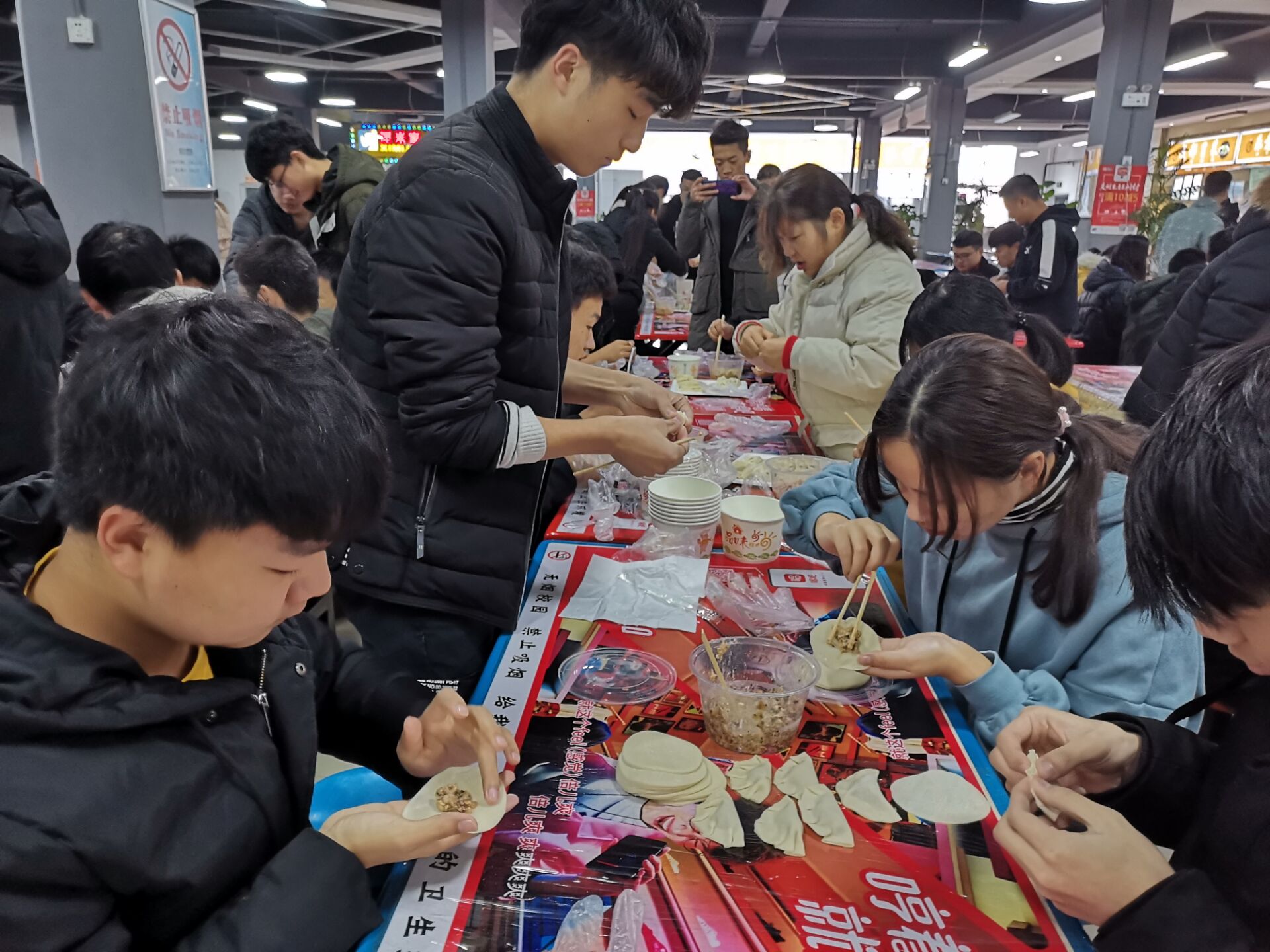 2019年12月22日,大数据学院在一食堂组织了一次别开生面的“喜迎新春、快乐饺子”团日活动。好吃不过饺子,温暖不过集体。为增强老员工思想教育,丰富我们的老员工活,加强同学之间的团结与交流,特组织了这次团日活动。