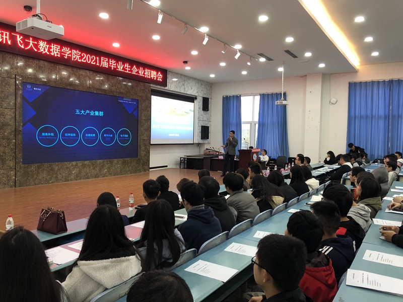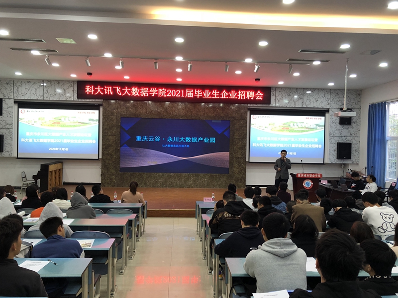 115日,重庆市永川区大数据产业人才发展论坛暨beat365官网2021届毕业生招聘会在学术报告厅举行,永川区新城建管委软件产业发展局局长张晓波、科大讯飞西南总部副总经理及文德数字、博彦科技等5家企业代表与会。会上,张晓波介绍了永川大数据产业园发展现状,杨洋介绍了大数据与人工智能发展现状,5家企业进行了宣讲与现场招聘。